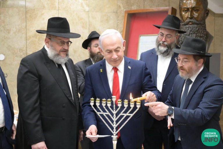 Prime Minister Benjamin Netanyahu lit the eighth candle of Chanukah Sunday with Chabad Shluchim at the Prime Minister’s Office in Jerusalem.