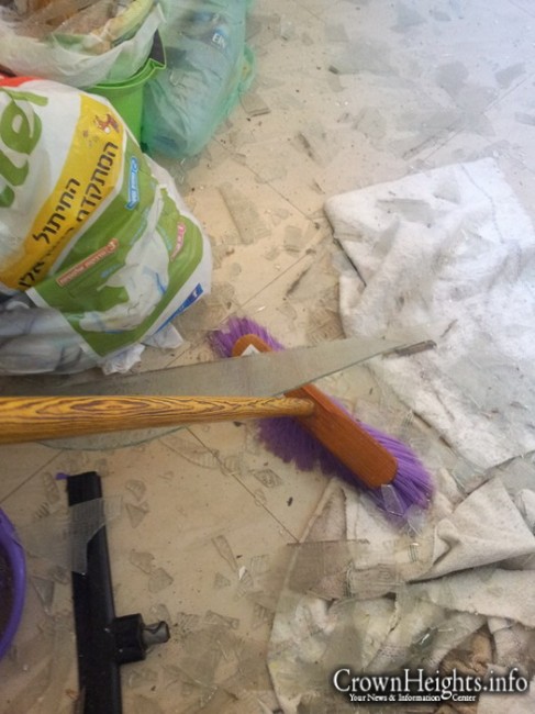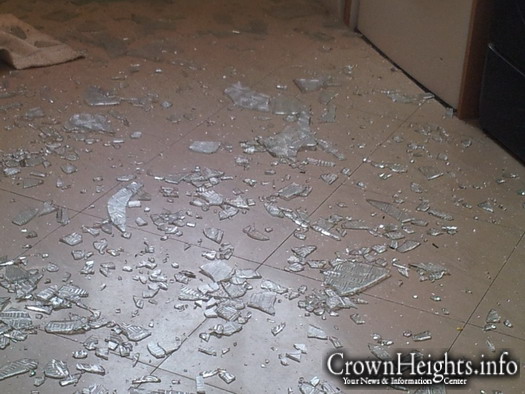 The home of Rabbi Shneur Lieberman as well sustained extensive damage, with many shattered windows.
