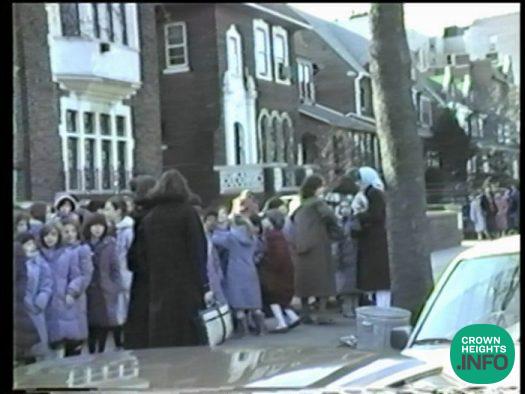 Especially unique in this film is footage from Yud Aleph Shevat 5746, when the first ‘dollars’ distribution took place. At the conclusion of the Yud Shevat Farbrengen, in breaking from his regular custom, the Rebbe did not distribute dollars through the Tankistim. Upon arriving at 770 the next morning, the Rebbe emerged from his room wearing his silk Kapote as he normally would at the Farbrengen, and began distributing dollars in the front hallway of 770. This never before seen video captures the crowds streaming to 770 from all over Crown Heights and the surrounding areas as news of the distribution spread. Buses of school children and mothers holding infants, everyone quickly lined up inside and outside 770 for the unique opportunity to receive a dollar for Tzedakah from the Rebbe’s holy hand.