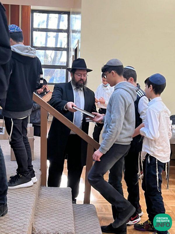 The students in the elementary school also prepared for Yud Shevat with a series of educational activities. On the day of Yud Shevat itself, they learned from the Rebbe’s teachings, gave charity, watched a video of the Rebbe, and held farbrengens in each class. Each student gave a personal gift to the Rebbe, in the form of a new resolution in their Torah and mitzvos observance.