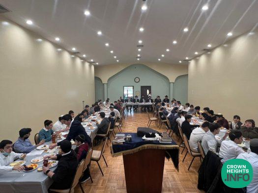 A special guest at the farbrengen, from New Haven, Connecticut, was Rabbi Eli Raskin, who shared insights about the lives of the Rebbe and the Rebbe Rayatz, translating it into contemporary language — showing how it could be relevant to the life of a young Jewish teenager in 2022.