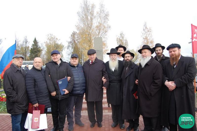 The event was organized by the Rudnya District Administration and the District Governor Mr. Yuri Ivanovich Ivashkin. Many local residents, Jews from the nearby cities Smolensk and Vitebsk, and distinguished guests came to honor the memories of the Jews buried at the Memorial site. In attendance were Rabbi Yitzhak HaKohen Kogan, Head of Agudas Chabad of the CIS and Rabbi of the “Boloshaya Bronya” community in Moscow; Rabbi Gavriel Gordon, the shliach to the village of Lubavitch; the philanthropist Mr. Baruch Ben Zion Gurovitz; and members of the Presidium of the Russian Jewish Congress who participated in the expenses of the renovation and development. of the memorial site