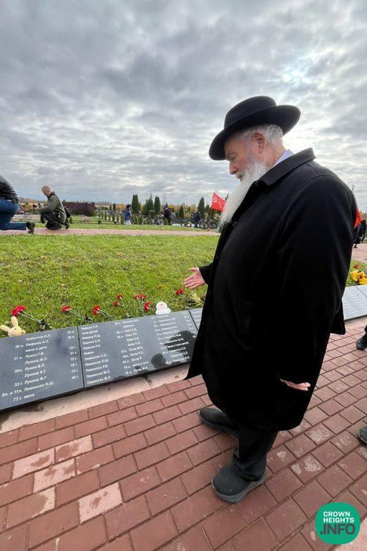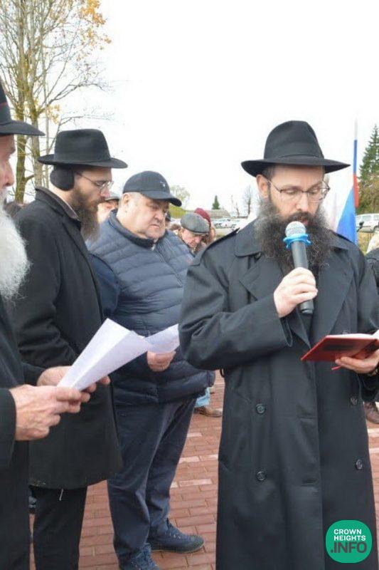 Rabbi Yehoshua Raskin, a respected member of the Moscow Jewish community and a grandson of the Chossid Rabbi Yehoshua Laine, was honored to recite the Kaddish in memory of the Kdoshim. With great emotion, he shared with the audience the awesome discovery, revealed by those involved in the transfer and reburial of the kdoshim 23 years later, that the body of his holy grandfather was found intact as on the day of his burial, with a radiant face and the holy Tehillim still in his hand.
