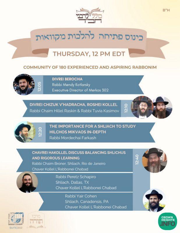 Kollel L’Rabbonei Chabad invites to community of anash and shluchim to it’s first class of the new semester on Hilchos Milvaos.
