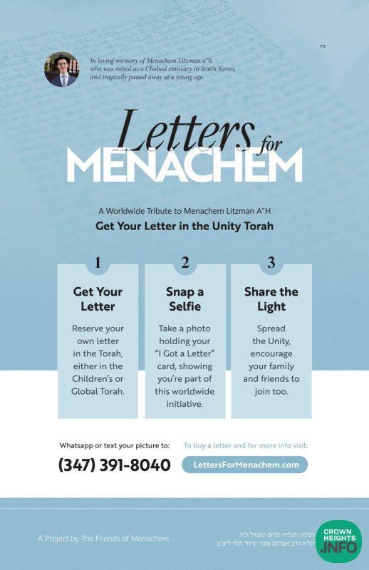 All information about participating in the campaign is available at LettersforMenachem.com.