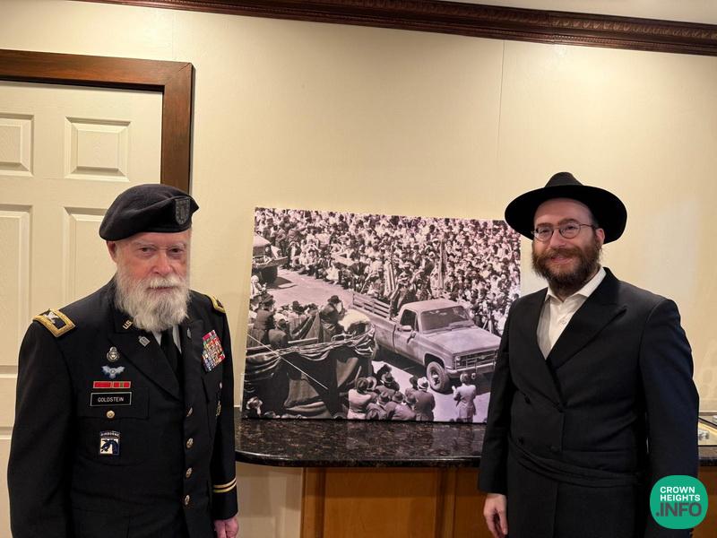 During the Shabbos meal, a touching full-circle moment unfolded when Donna, a longtime supporter of Jewish service members, shared her personal connection to Rabbi Goldstein dating back more than three decades. While stationed in Heidelberg, Germany, in 1989, she met Chaplain (COL) Rabbi Sanford “Sandy” Dresin (Ret) and later Chaplain Goldstein who was sent by the US Army to lead Jewish services. It was Chaplain Goldstein who introduced her to Chabad and ignited her lifelong spiritual journey.