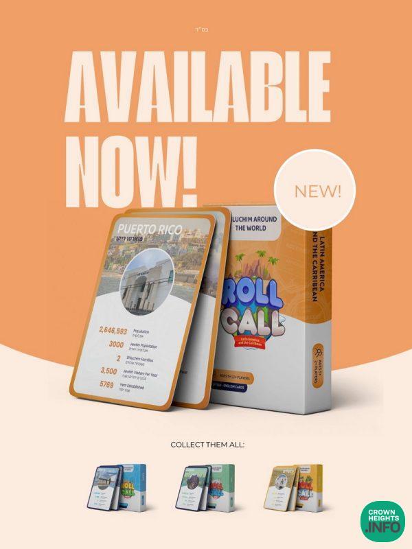 Ever wonder how many Shluchim there are around the globe? Ask any kid and they might be able to tell you all about USA, Europe, Eretz Yisroel, and now about Latin America too! That’s because “Roll Call” is back with another beautiful deck of cards teaching kids all about the Rebbe’s Shluchim in Latin America and the Caribbean!