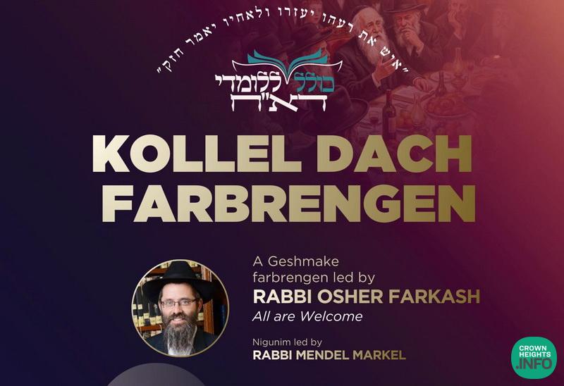 Live Tonight: Kollel L’lomdei Dach To Host Farbrengen at 7:30pm with Reb Osher Farkash