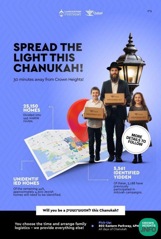 Lamternshtik, together with Chabad Outreach of Sheepshead Bay directed by Rabbi Yitzchok Schwartz, is working tirelessly to expand the ability and capacity for Crown Heights families to enjoy a practical, meaningful, and truly accomplishing Mivtzoyim experience this Chanukah.