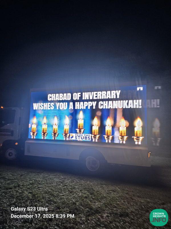 Many of the participants told Rabbi Rosenstein that “this was the most exciting Chanukah parade ever.” This year there was the addition of a Chanukah bannered school bus and a party bus, along with the return of the Hatzalah high water vehicle and mobile billboard truck. The mobile billboard truck displayed wishes of “Happy Chanukah”, “increase acts of goodness and kindness” and “Light for Australia”.