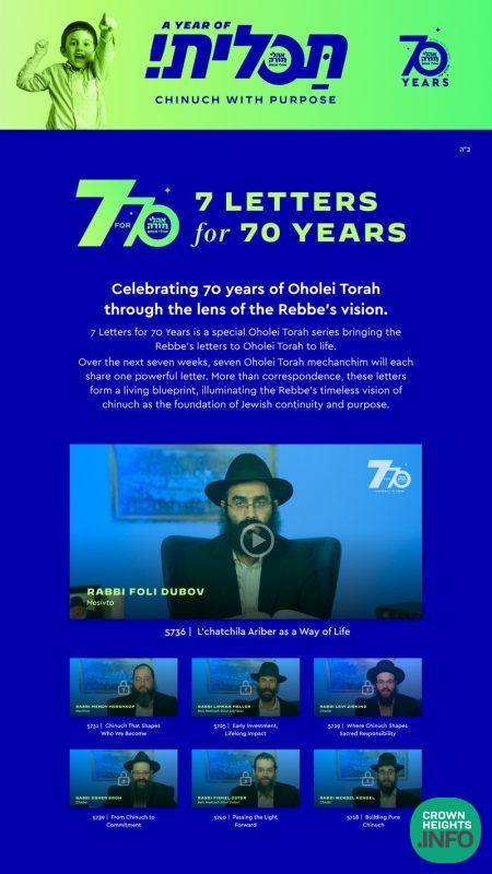 Oholei Torah Launches “7 Letters for 70 Years” Series