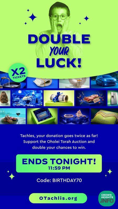 Double Your Luck Ends Tonight at the Oholei Torah Auction