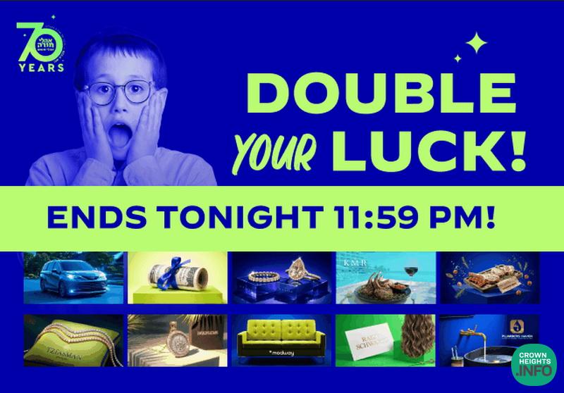 Now through Motzei Shabbos at 11:59 PM, participants can take advantage of the Double Your Luck promotion and receive twice the chances to win. This is the perfect moment to join, give, and be part of Oholei Torah’s seventieth birthday celebration. You need to be in it to win it.