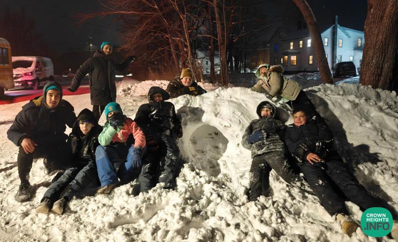 Motzei Shabbos brought snow-filled fun: igloo-building, hide-and-seek in the snow, and a “Top-Down Fredo” activity. The boys went to bed tired and happy.