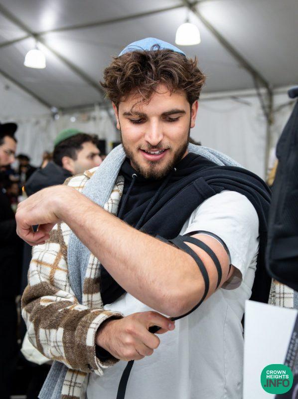 Following the Ohel visit, participants gathered for lunch. But the programming wasn’t over. Tables were set up throughout the area, each offering a different practical mitzvah: Shabbat candle kits, the opportunity to write a letter in a communal Sefer Torah, and more, encouraging young professionals to take on an additional commitment to bring back home.