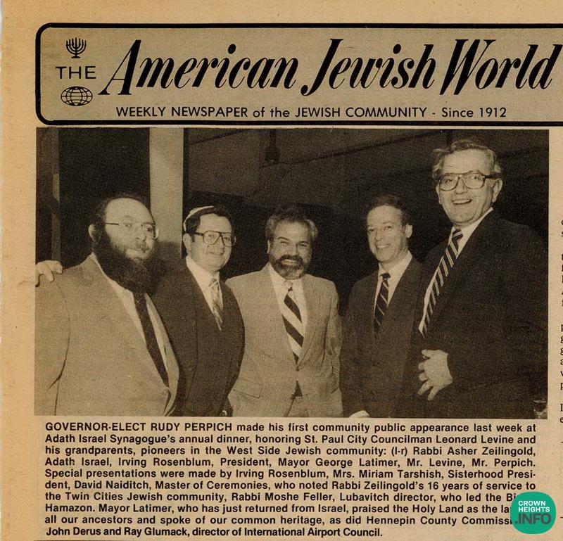 In the late 1970s Phil Moncharsh, who befriended Rabbi Gershon Grossbaum and other Lubavitchers, began to attend Adath Israel on Shabbos.