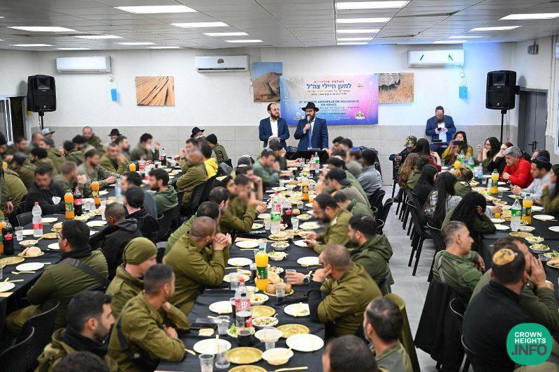 In his address, Rabbi Yossi Amar spoke about the Rebbe’s fatherly relationship with IDF soldiers – his constant care to provide tefillin, send Torah scrolls to bases, and strengthen morale at every opportunity, viewing them as shluchei mitzvah who safeguard the Jewish people. His words deeply moved those present and gave the gathering a profound Chassidic meaning.