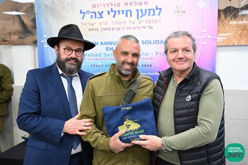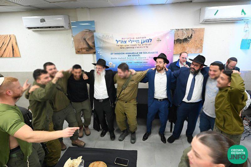 Continuing a long-standing tradition, Chabad 77 France conducted yesterday its 21st solidarity mission to strengthen the soldiers of the Israel Defense Forces. Led by the shluchim Rabbi Yossi and his wife Mrs. Tzalcha Amar, this annual journey – now running for more than two decades – gives practical expression to the Rebbe’s sacred directives: to stand at the side of Israel’s soldiers and fortify their spirit, both materially and spiritually.