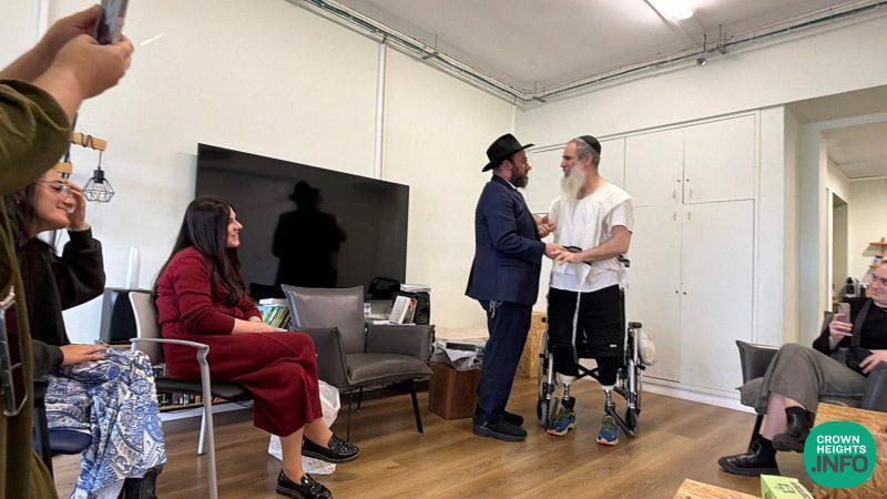 A particularly powerful moment took place during a meeting with the devoted soldier the Shliach Rabbi Liraz Zaira – may the Almighty grant him a complete and speedy recovery very soon. Rather than receiving encouragement, he himself farbrenged with the delegation – uplifting everyone with faith and strength, demonstrating how positive thinking can elevate a person above even the greatest challenges.