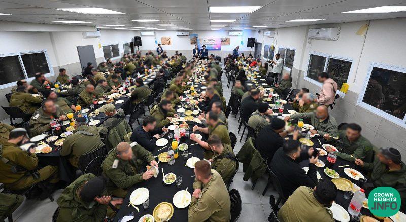 In his address, Rabbi Yossi Amar spoke about the Rebbe’s fatherly relationship with IDF soldiers – his constant care to provide tefillin, send Torah scrolls to bases, and strengthen morale at every opportunity, viewing them as shluchei mitzvah who safeguard the Jewish people. His words deeply moved those present and gave the gathering a profound Chassidic meaning.