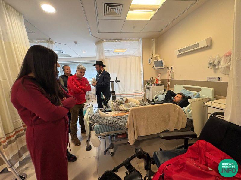 A particularly powerful moment took place during a meeting with the devoted soldier the Shliach Rabbi Liraz Zaira – may the Almighty grant him a complete and speedy recovery very soon. Rather than receiving encouragement, he himself farbrenged with the delegation – uplifting everyone with faith and strength, demonstrating how positive thinking can elevate a person above even the greatest challenges.