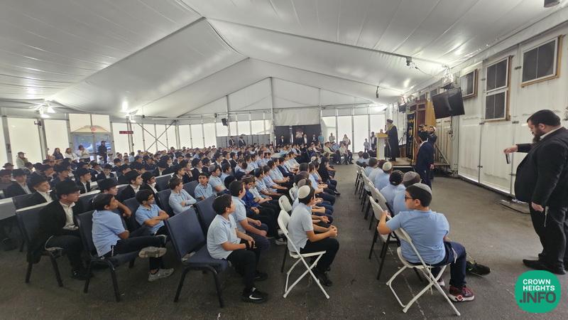 At a gathering of Torah, tefillah, and tzedakah for the safety of the Yidden in Eretz Yisroel with Grades 5-8, Rabbi Yosef encouraged the boys to focus on their learning, reminded them that they have a responsibility to learn Torah and spread Yiddishkeit to all those around them, “l’chsheyafutzu mayonosecha chutzah.”