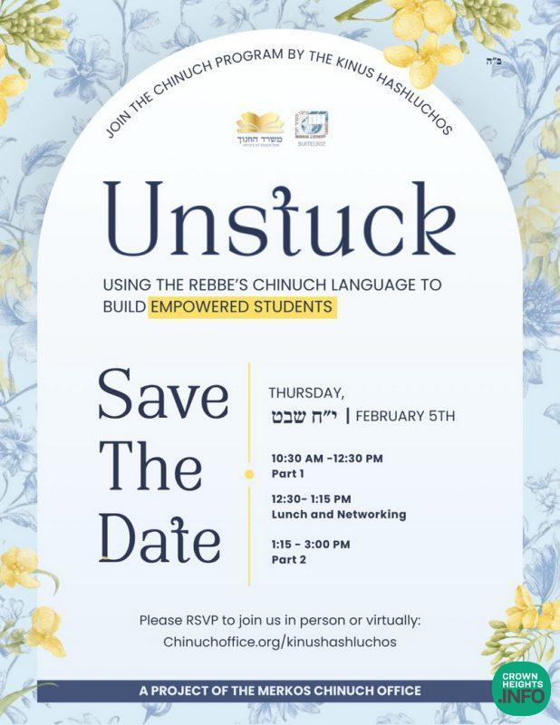 Register for both in-person and virtual options at: chinuchoffice.org/kinushashluchos