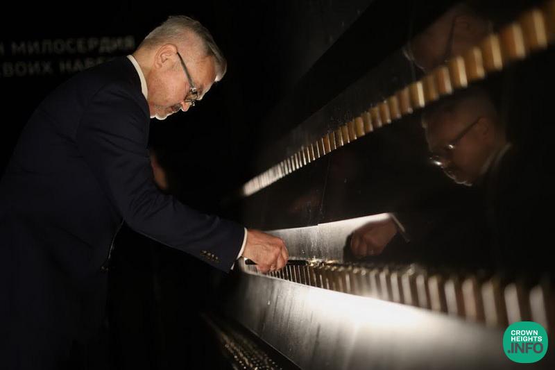 The ceremony takes place in the southern wing of the museum, in a hall entirely dedicated to the memory of World War II. Thousands of visitors pass through this space daily, where they are exposed to the self-sacrifice of the holy martyrs of the Holocaust, of blessed memory, and to the immense hardships endured throughout the war in general—and in Russia in particular—until its conclusion with the advance of the Red Army to Berlin and the liberation of the Auschwitz concentration camp.