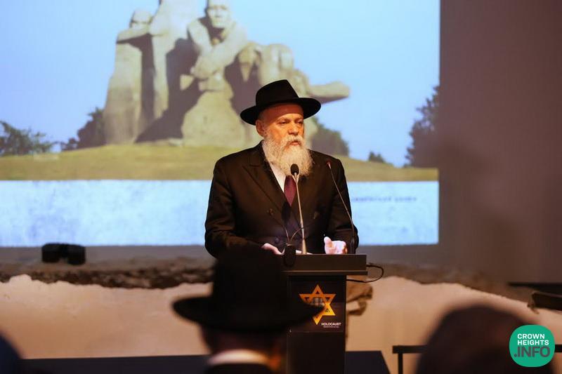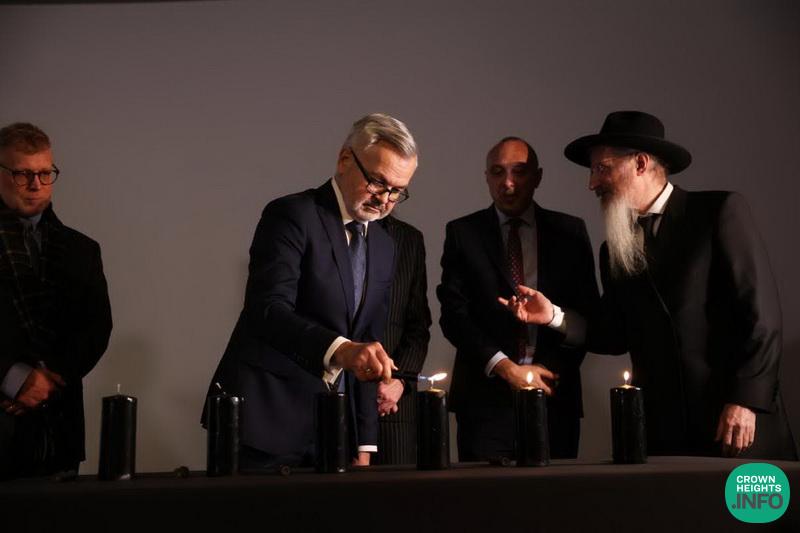 After reciting the Kel Malei Rachamim prayer in memory of the six million holy martyrs, the Chief Rabbi of Russia, Rabbi Berel Lazar lit six memorial candles in their honor. The Chief Rabbi then delivered the central address of the ceremony, after which he read aloud a letter from the President of the Russian Federation, Mr. Vladimir Putin, who in previous years has also personally participated in this annual memorial event.