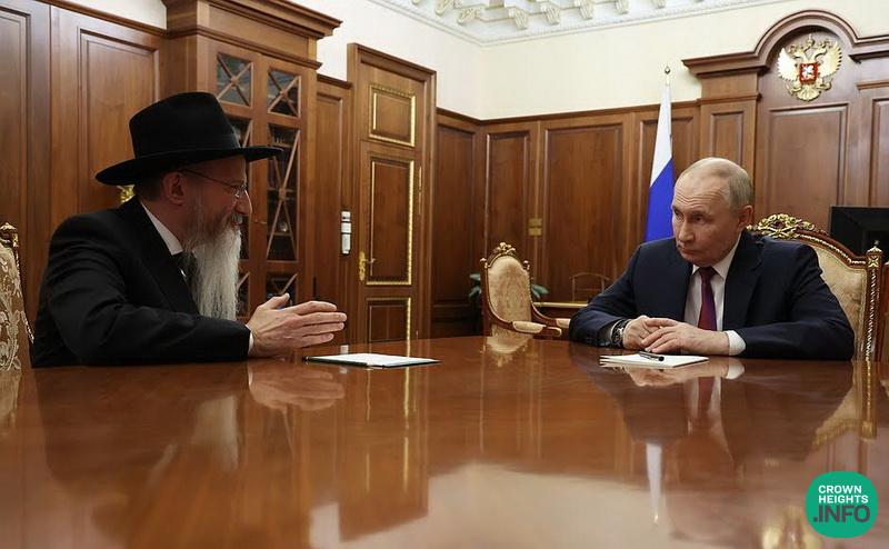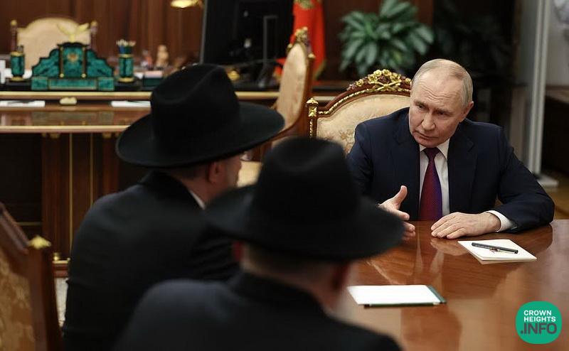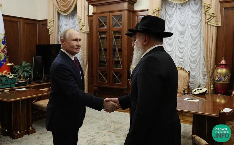 More than once, the Russian President has shared stories of the Jewish neighbor he had in his childhood, whom he would see praying and studying, and who would even treat him to Jewish foods like ‘Gefilte Fish’. Now, in the meeting which later continued without the media, the Chief Rabbi brought this up, noting that as he recently discovered that family were Chassidic Jews from Leningrad. They maintained their observance with complete mesiras nefesh (self-sacrifice), down to the finest detail. One can see the wondrous hashgacha pratis(Divine Providence) that arranged for the future President of Russia to grow up alongside a Chassidic family whose conduct left a lasting impression on his life.