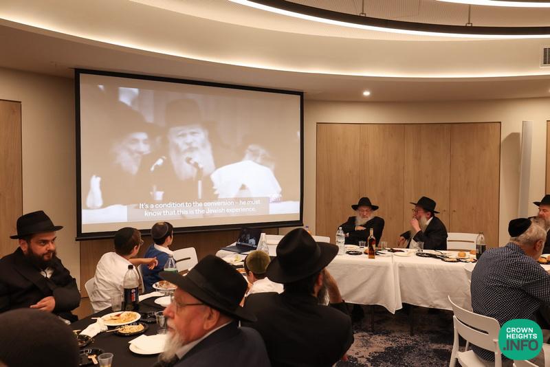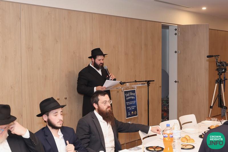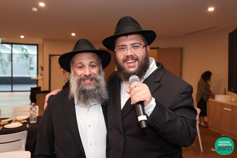 The farbrengen was coordinated by Rabbi Elimelech Levy of Chabad Youth NSW, who also served as MC for the evening. Catering was provided by Mila Catering, and photography by Daniel Katzsound by Chaim Ayalon and video by Mark Singer.