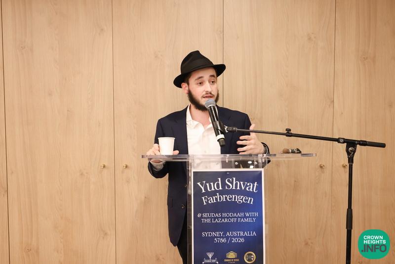 Sydney’s Jewish community gathered in large numbers to mark Yud Shvat at a deeply moving communal farbrengen, jointly hosted by Chabad NSW, Chabad of Bondi, and Tzemach Tzedek, with the participation of the Lazaroff family, who co-hosted the evening as a seudas hodaah.