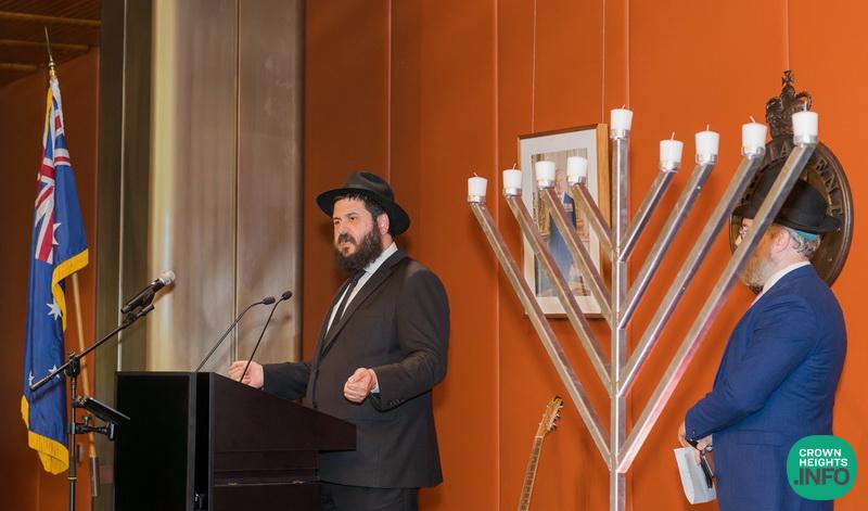 A blessing for the Government of Australia was delivered by Rabbi Pinchus Feldman, while Rabbi Eli Feldman led a prayer in memory of those murdered in the attack and for the recovery of the injured.