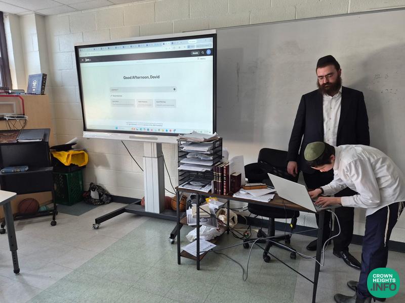 Rabbi Goldberg, who works in the JEM AI department, showed them how JEM AI software works, enabling anyone to find the Rebbe’s messages on any topic. The Talmidim were then given the opportunity to experiment with it, as well as practice watching a video of the Rebbe and choosing the relevant tags of topics that were spoken about.