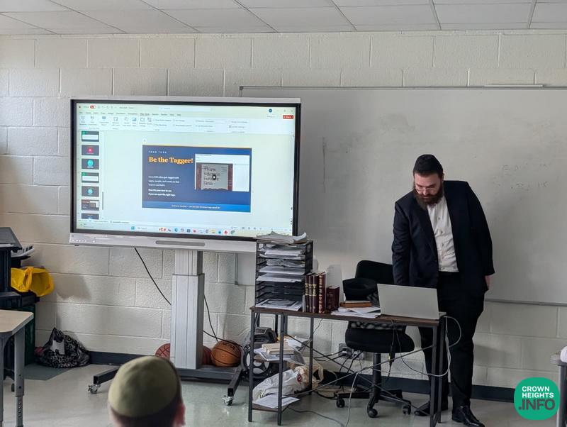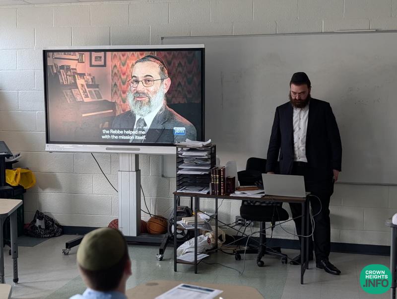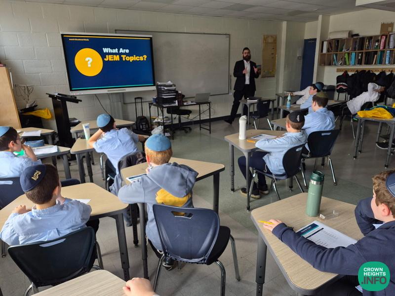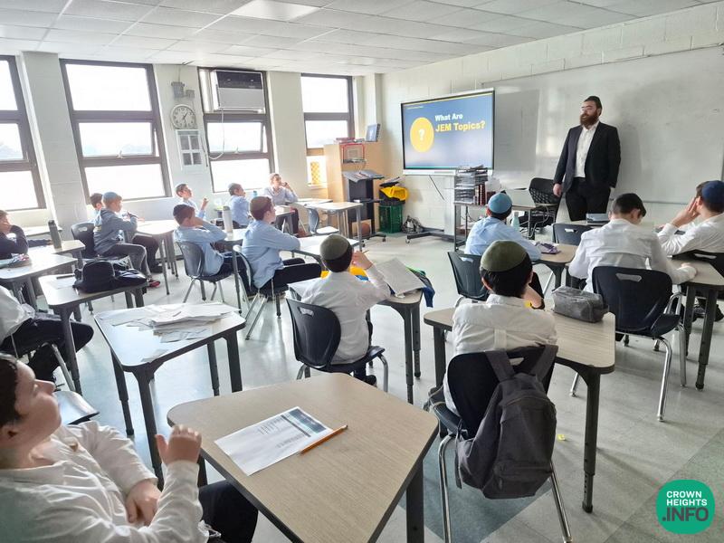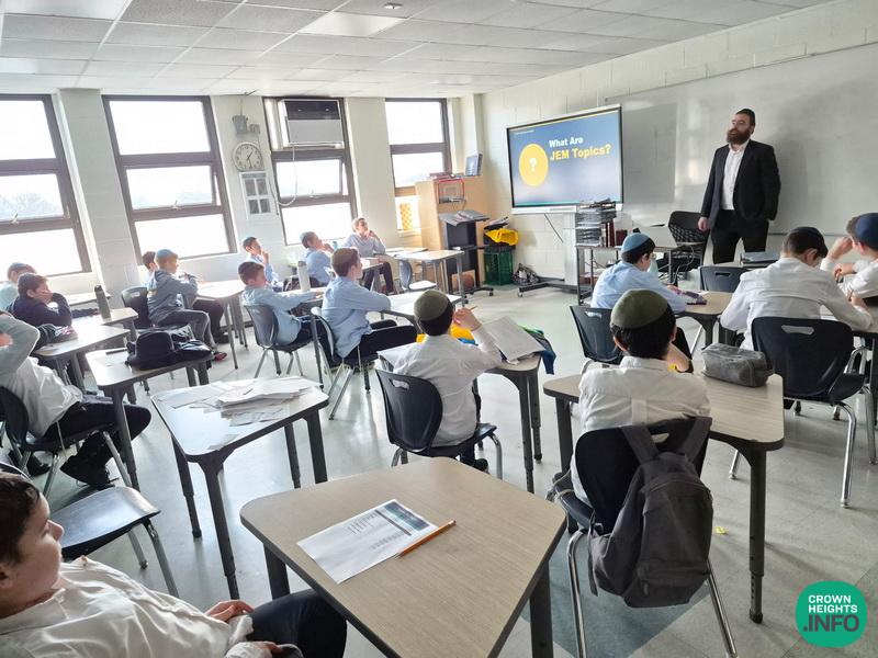 This week, Rabbi Dovid Goldberg of JEM, gave a special presentation to Talmidim of Kita Zayin of Tomchei Tmimim Ocean Parkway. In the presentation, they got to see a collection of the Rebbe’s messages on various topics of life, ranging from self-confidence in Yeshiva to the US Constitution, and from lessons in chess to the value of looking for life on Mars.