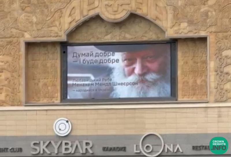 Complementing the broadcast, a large-scale outdoor campaign was launched across Kyiv. Digital billboards and street displays throughout the capital prominently featured the Rebbe’s image alongside the timeless Chassidic adage: “Think positive — it will be positive.”