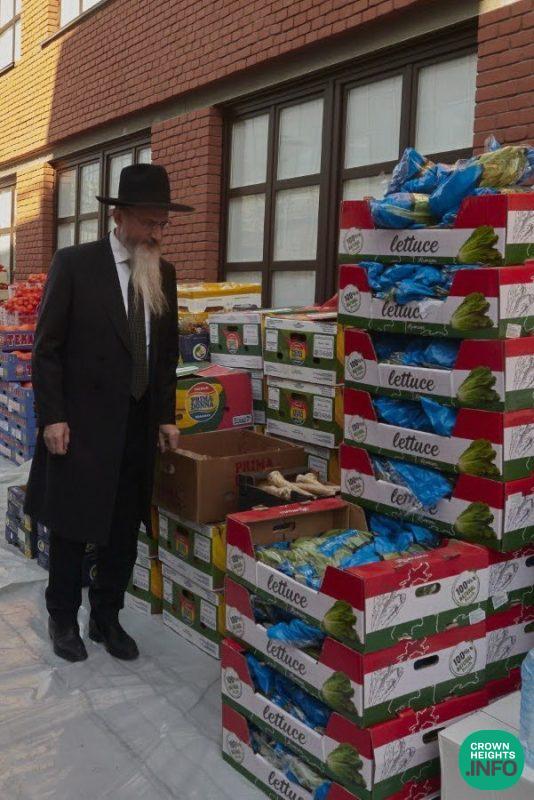 The Chief Rabbi himself visited the Shaarei Tzedek Jewish Chesed Center to personally oversee the operation. During his brief visit, he reviewed detailed data regarding the volume of orders, the number of individuals served, and personally inspected the quality of the products.