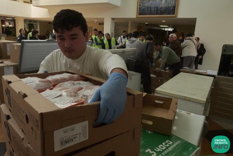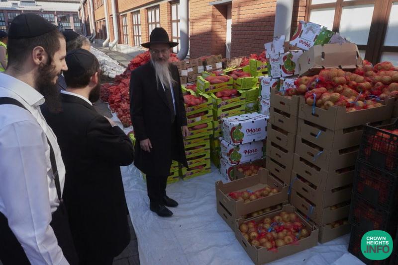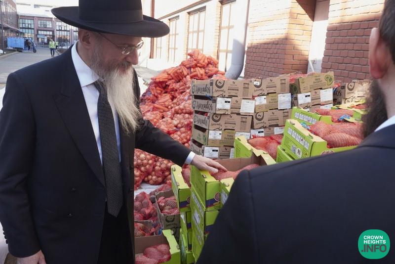The Chief Rabbi himself visited the Shaarei Tzedek Jewish Chesed Center to personally oversee the operation. During his brief visit, he reviewed detailed data regarding the volume of orders, the number of individuals served, and personally inspected the quality of the products.