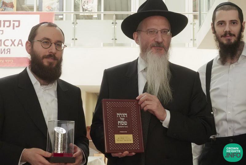 Together with members of the leadership of the “Simchas Shabbos V’Yom Tov” organization in Moscow—Rabbi Dovid Shapiro and Rabbi Chaim Moshe Weber—the Chief Rabbi presented a special token of appreciation to board member Rabbi Avraham Zaks, recognizing his exceptional efforts this year in advancing the campaign to an unprecedented level of success.