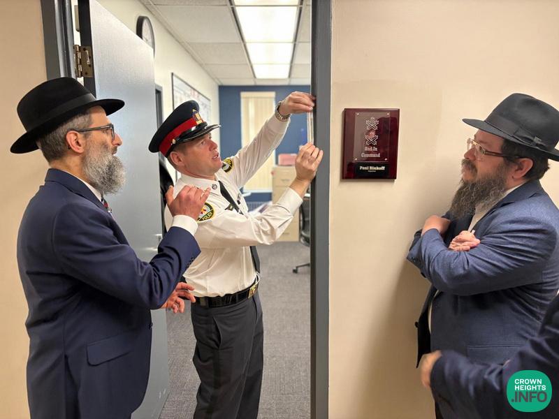 Chief Inspector Affixes Mezuzah to Office Door, Marking Powerful Kiddush Hashem in Toronto
