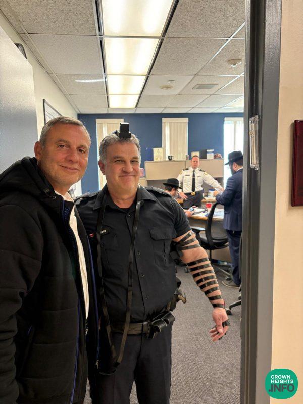 Chief Inspector Rinkoff, who oversees approximately 300 constables, was joined by Rabbi Yirmi Cohen and other local Shluchim for the occasion, transforming a routine moment into what participants described as a true Kiddush Hashem. The brief ceremony included the Bracha and the careful placement of the Mezuzah on the doorpost, marking the space with a symbol of Jewish faith and identity.