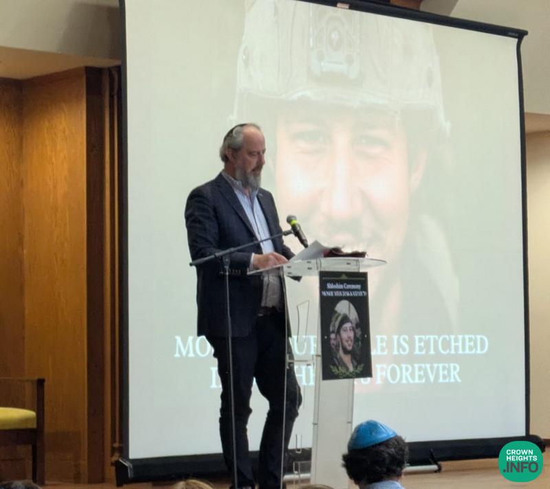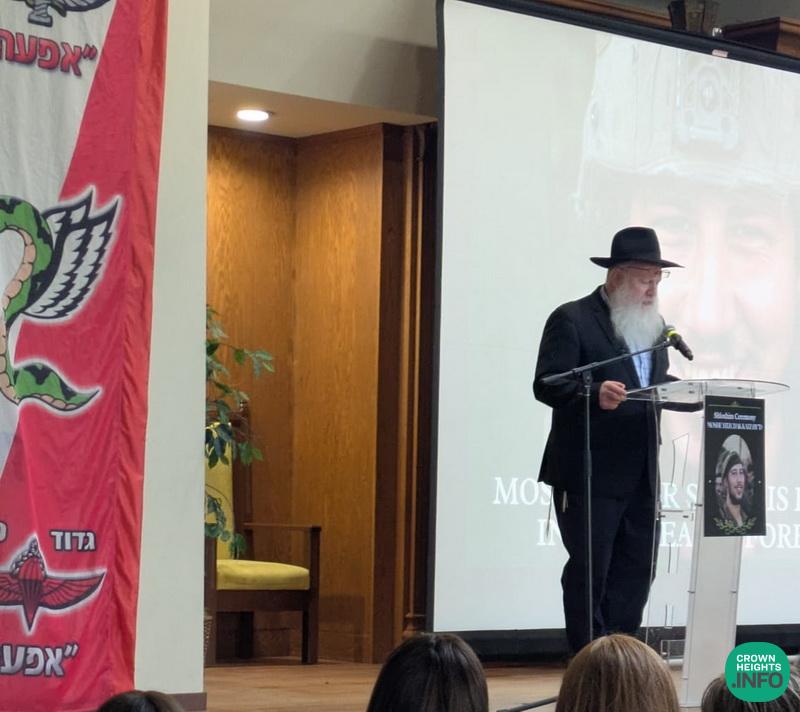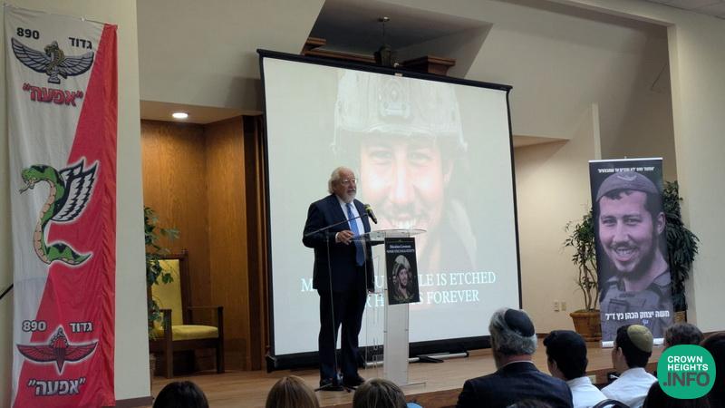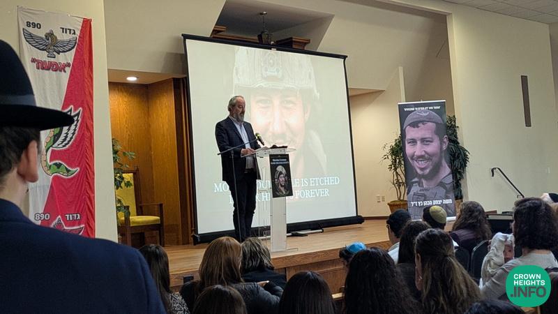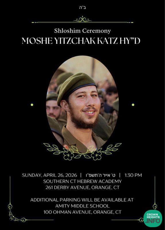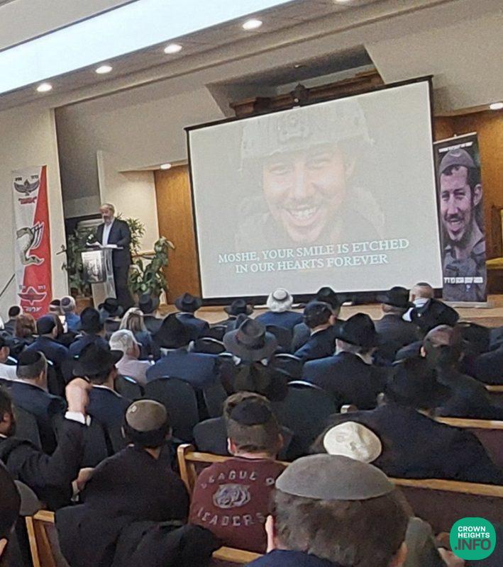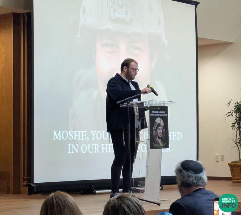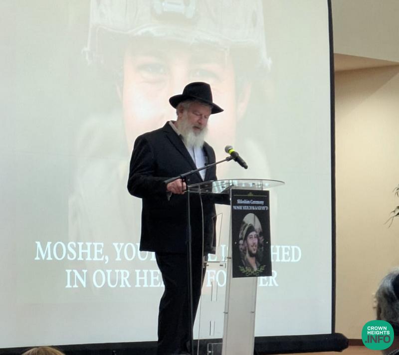 The event was attended by prominent community leaders, including Rabbi Yehuda Krinsky and Rabbi Shea Hecht, Moshe’s great-uncle. Family members who shared heartfelt words included his father, Mendel Katz; his grandmother, Mrs. Malik Katz; his uncles Shneur Katz and Sholom Ber Katz; and his cousin, Mendy Katz. Each reflection painted a picture of a devoted son, a proud Chossid, and a fearless soldier.