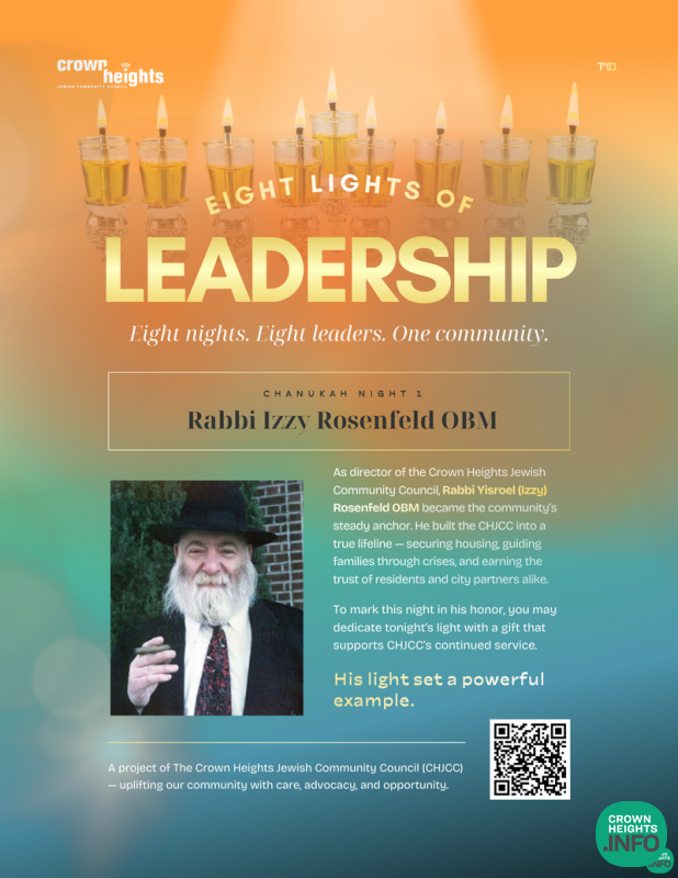 This Chanukah, the CHJCC launches a new initiative celebrating the individuals whose quiet leadership and unwavering dedication have shaped Crown Heights. Each night, we will honor one community leader, past or present, whose work, values, and compassion continue to illuminate our neighborhood.