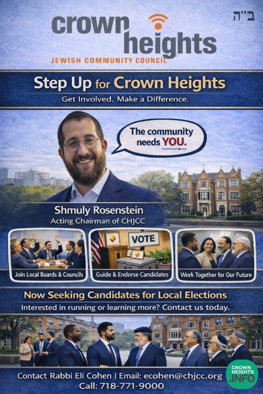 Following the strong participation and feedback at the recent Crown Heights Town Hall, the Crown Heights Jewish Community Council (CHJCC) is calling on qualified community members to step forward to serve on local Community Boards representing Greater Crown Heights.