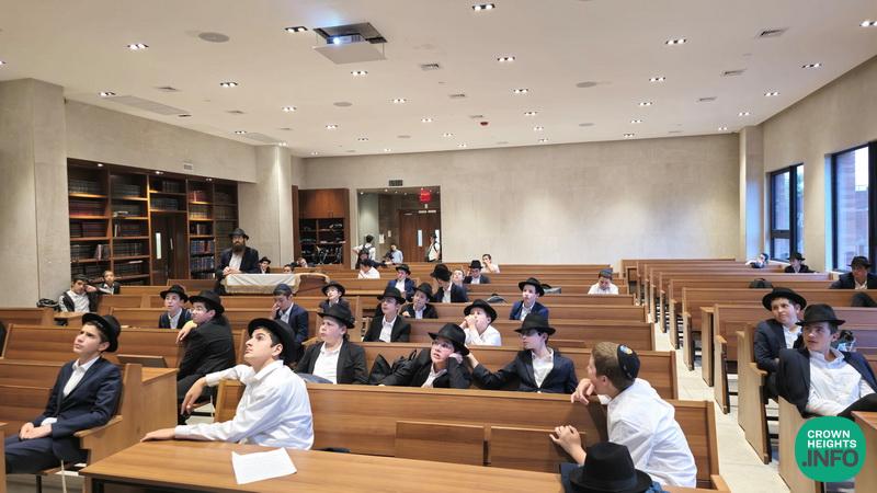 Before Rosh Hashana, the Talmidim gathered for a special presentation by Rabbi Sholom Tenenbaum, who shared the background and significance of the Rebbe’s Tekios and taught the boys how to blow Shofar properly. In preparation for the Yomim Noroim, the talmidim learned the Tefillos and sang together with Rabbi Shmueli and Choni Tzuker, whose Niggunim inspired the entire division.