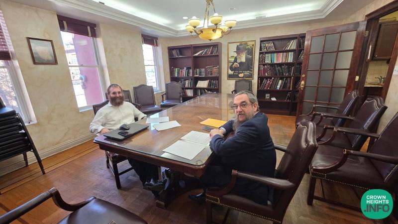Today, a productive meeting took place between Rabbi Meir Bukchin, Executive Director of Vaad Hakohol, and Rabbi Mendel Marasow, CEO of the Crown Heights Jewish Community Council (CHJCC).