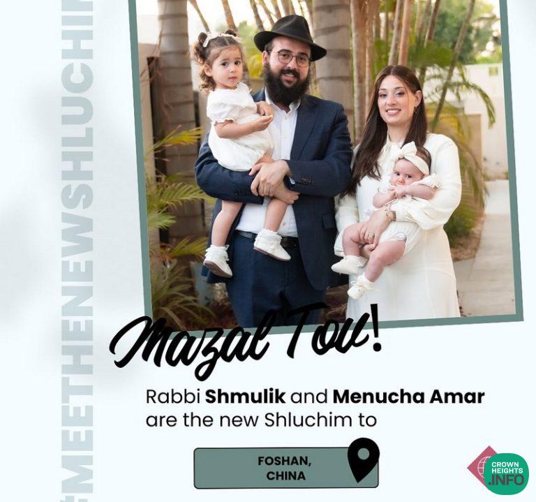 Wishing Mazel Tov to Rabbi Shmulik and Menucha Amar who are moving out on Shlichus to Foshan, China.