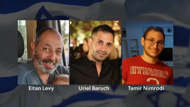 The bodies of Uriel Baruch, Tamir Nimrodi, and Eitan Levy have been identified as three of the four bodies of deceased hostages transferred Tuesday night to Israel.