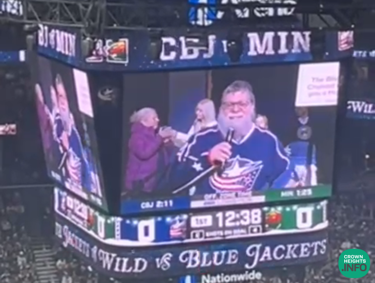 The game is still on, and the Columbus Blue Jackets can still beat the Wilds, but the Menorah has been lit at the hockey game and the Chabad Shliach has already called he game. Light wins!