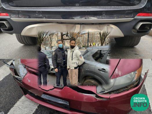 “The african-American driver rear-ended a Jewish man’s car near Khan’s,” a witness told CrownHeights.info. “He then attempted to flee, but he hit the white box-truck parked near Mendy’s.”